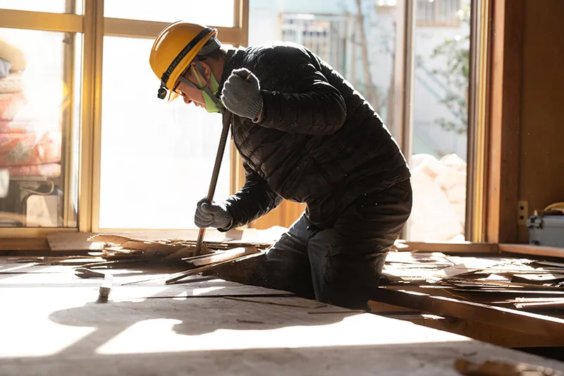 重機オペレーターや職長の指示のもと、さまざまな補助作業を行います。 解体材の分別、粉じんが飛ばないようにするための散水作業。 現場の清掃、整理整頓、廃材の搬出など。 ※解体工事の基本を学ぶ最初のステップです。簡単な作業から丁寧に指導しますのでご安心ください。